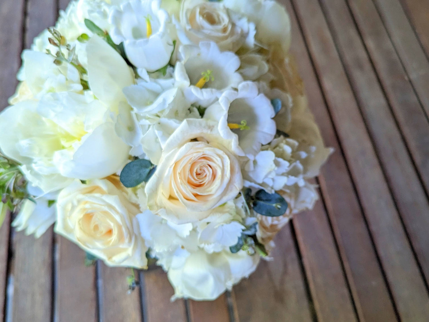 Given the significance and complexity of your wedding day, I kindly request that you designate a point of contact with whom I can coordinate and arrange an in-person meeting for the bouquet handover.